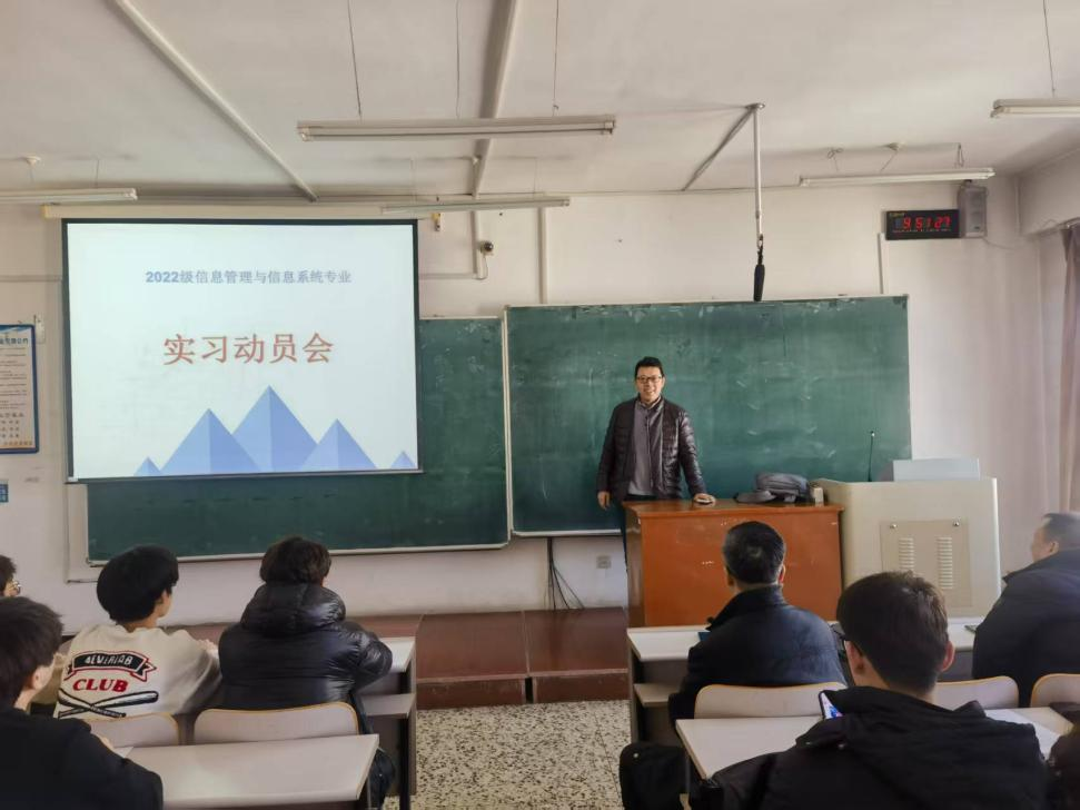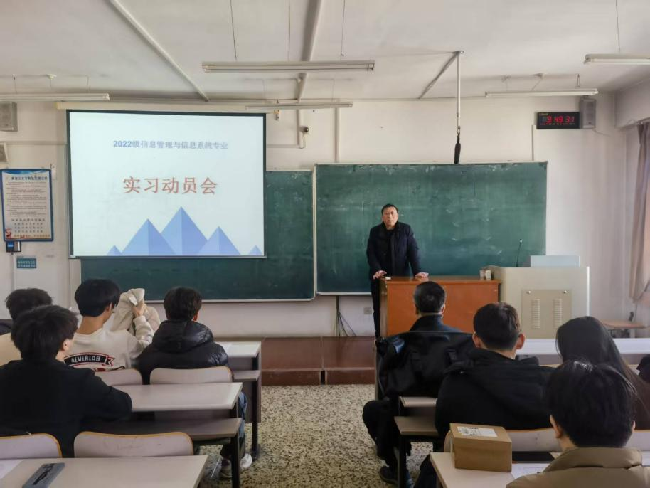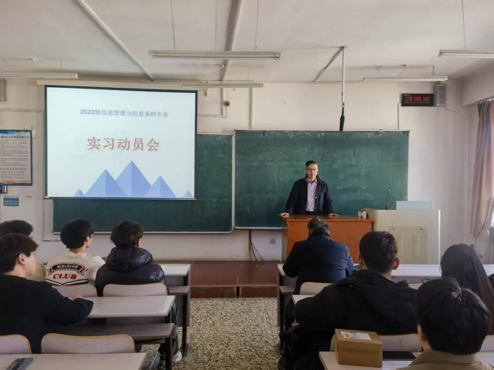 2025年3月3日上午10:00,信息管理与信息系统专业在汇文楼566召开了2022级员工专业实习动员会,专业实习带队老师和全体2022级同学参加了会议。专业负责人刘甲学强调了实习的目的与意义,强调实习是理论与实践结合的关键环节,旨在提升员工专业技能、职业素养及社会适应能力。明确实习目标包括深化专业认知、积累行业经验、明确职业规划等。