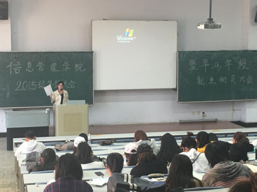 最后,孙老师还强调了寝室卫生及安全问题,并衷心希望同学们都能找到心仪的工作,读研顺利,奔赴大好前程。此次年级大会暨毕业年级就业动员大会让同学们意识到了就业前景的严峻性与紧迫性的同时,也为大家指明了道路和方向,唤醒了同学们的就业意识,帮助大家树立明确目标,鼓舞了士气,相信2015级的同学们都能顺利毕业,成功找到适合自己的工作并为之奋斗,期待着同学们拥有更加美好的明天!