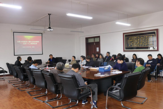 为深化学习宣传贯彻党的十九大精神和省委十二届二次全会精神,引领广大师生把思想和行动统一到党的十九大和省委十二届二次全会的决策部署上来,beats365亚洲版官网于2018年4月11日14:00在汇文楼834会议室举行学习党的十九大精神专题讲座。本次讲座以“决胜全面建成小康社会的冲锋号——党的十九大精神宣讲”为主题,由beats365亚洲版官网哲公司康渝生教授主讲。公司领导、全体教师和员工党员代表参加了学习。