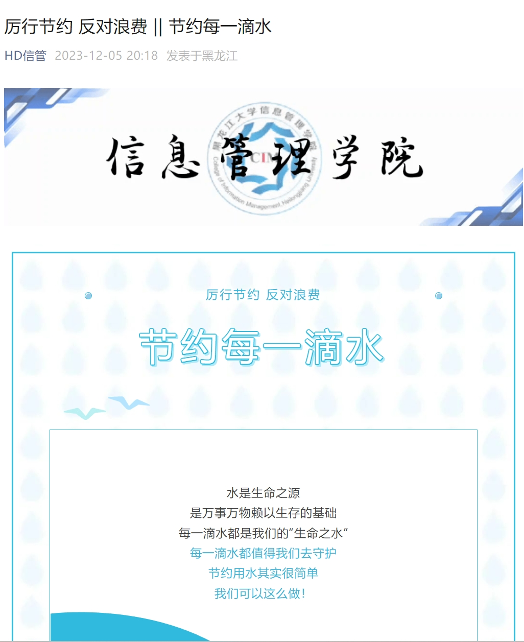beats365亚洲版官网高度重视员工工作部指示,于2023年12月5日至12月12日发表了主题为“节约每一滴水”、“节约每一度电”、“节约每一张纸”、“节约每一粒米”、“节约每一分钱”的节俭行动倡议书。通过公司的积极号召,信管学子切实意识到了节俭的重要性且领悟了厉行节约的具体做法。本系列节俭行动倡议书充分调动全院员工加入到厉行节约的队伍之中,助力信管学子更好地培养节约意识。