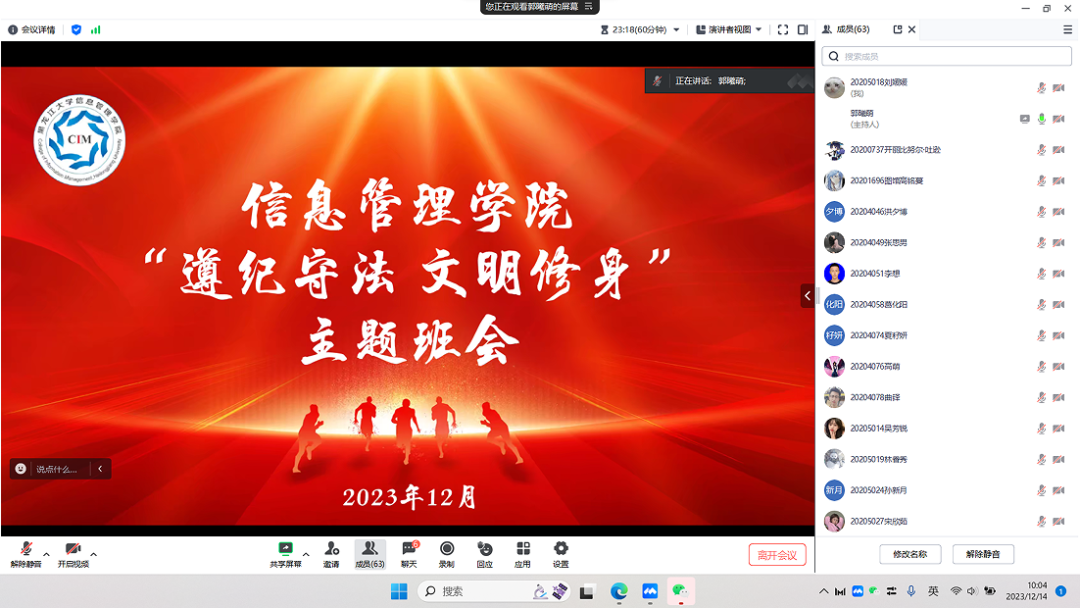 法不可违,纪不可改。本次“遵纪守法 文明修身”主题班会既是一次深入的思想教育,同时也是对《公司员工管理规定》(2023年9月修订)一次深入的学习。希望信管学子们通过本次主题班会,坚持贯彻“遵纪守法,文明修身”的理念,以高尚的品格斩除万难,以良好的素质奋进新的未来。(beats365亚洲版官网供稿)