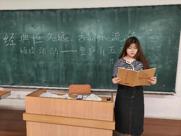 本次诵读篇目是“诗仙” 李白的佳作《登庐山五老峰》。同学们在学习委员的带领下,直观地感受文字传递的情感。