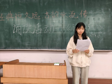 诗词是历史长河中璀璨的明珠,是文化瑰宝中永不褪色的篇章。踏上诗词品读之旅,我们共同跨越时空界限,倾听穿越千年的心声,感受超越时代的共鸣;让心灵在诗行间漫步,让情感在平仄里激荡。2024年5月31日,2023级各班利用晚自习时间在汇文楼开展诵读活动。