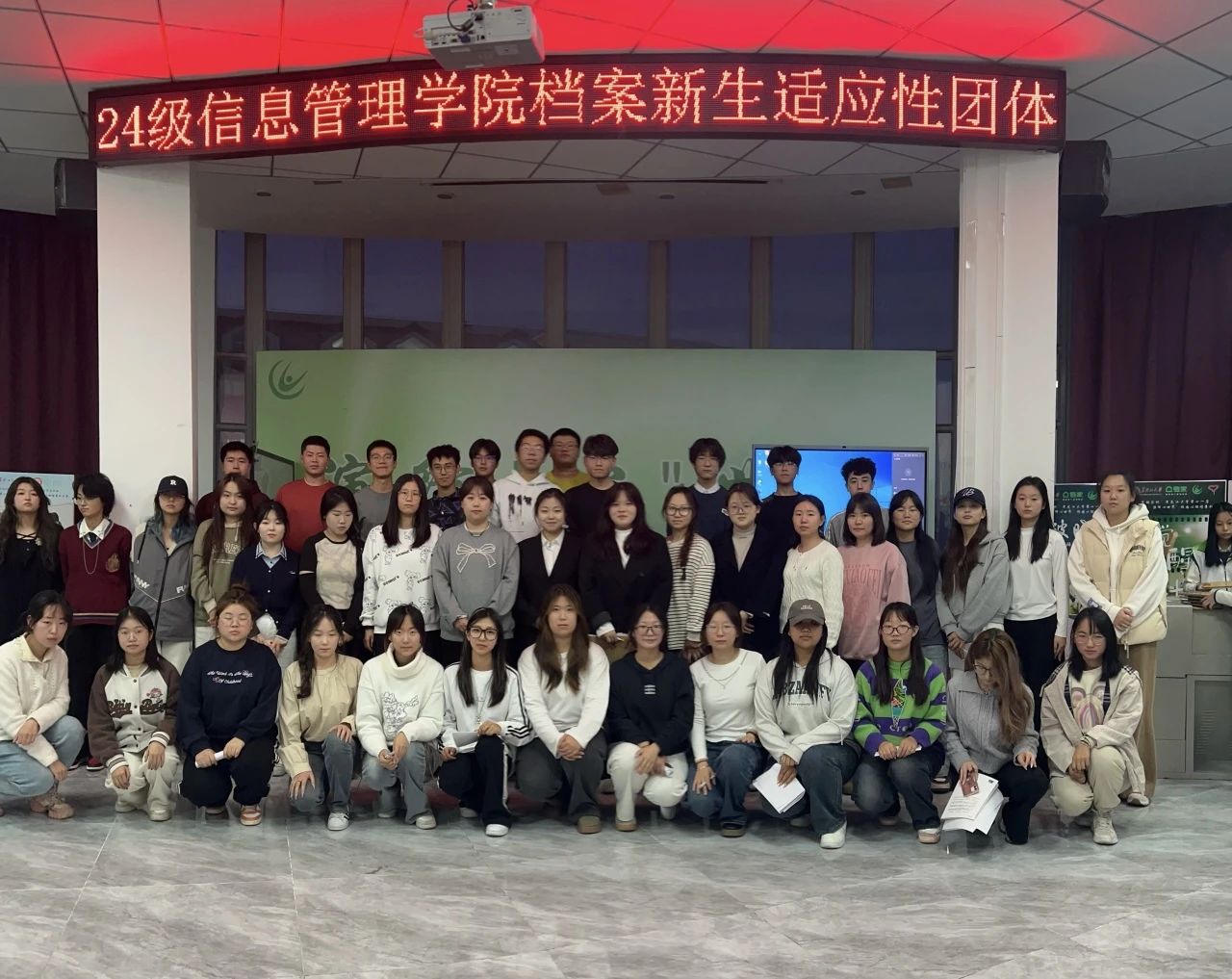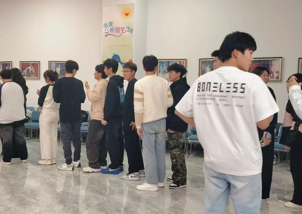 紧接着,“默契排队”游戏将同学们分成了若干小组,各小组在不能说话的前提下需完成按照出生年月排序站队的任务。这个环节不仅锻炼了大家的团队协作能力,也增强了彼此之间的默契。