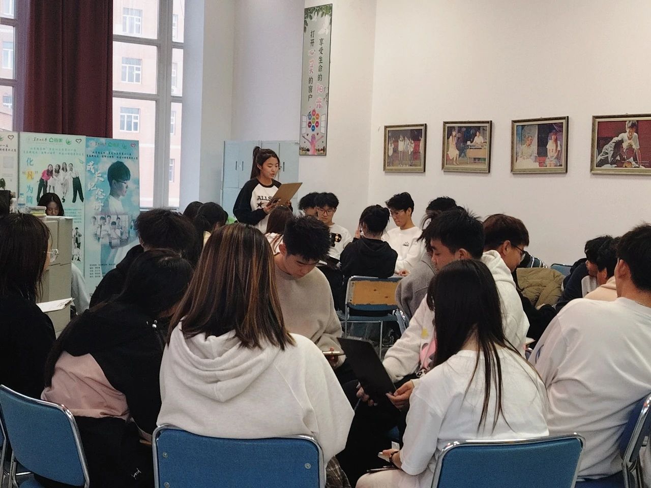 在这之后,令人期待的环同心绘画环节精彩登场。各小组围聚在一起,在不能进行语言交流的情况下,共同投入到主题画的创作中。大家心有灵犀,用画笔传递着彼此的创意与情感。完成创作后,各小组代表对画作含义进行阐释,其他小组的同学纷纷提问交流。这个环节进一步提升了团队的协作能力,让同学们在无声的合作中绽放出独特的艺术魅力,为本次活动增添了浓墨重彩的一笔。