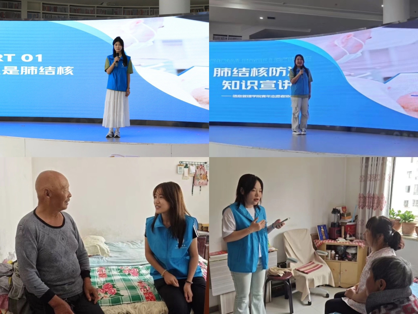 2024年8月22日,信管青协在北安市图书馆及庆民社区举办了以“防治结核 志愿有我”为主题的科普活动。志愿者们通过展板展示、视频播放、现场答疑等多种形式,向社区居民和图书馆读者普及了结核病的相关知识。特别是社区的独居老人们,他们在宣讲团成员的耐心讲解下,不仅填补了关于结核病知识的空白,还增强了对健康生活的重视。此次活动不仅提升了公众的防护意识,同时很大程度上促进了结核病相关知识的普及。