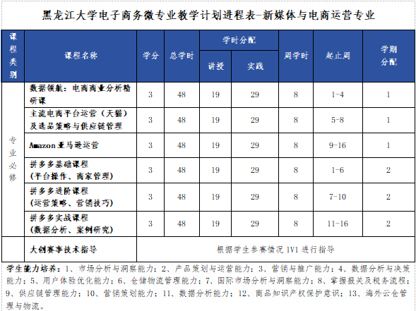 本微专业包含六大课程:既包含传统电商方向,又包括新媒体电商及跨境电商方向。