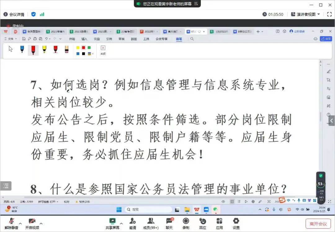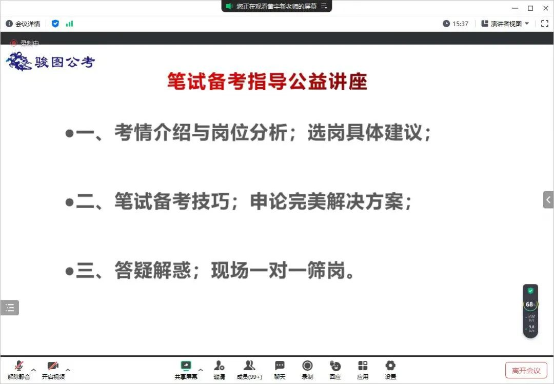 为进一步做好2024届毕业生就业工作,切实帮助毕业生加深对公务员、事业单位考试的认知,明确接下来省考、选调生及事业单位备考的注意事项,提高公考及事业编的上岸率,全力促进毕业生高效充分就业。beats365亚洲版官网于2024年1月25日在腾讯会议开展2024年公务员考试政策解读与备考指导讲座。本次讲座由公司党委副书记赵丽明老师主持,beats365亚洲版官网文公司副教授黄宇新老师主讲,beats365亚洲版官网全体辅导员,2024届本硕全体毕业生和部分低年级员工共同参会。