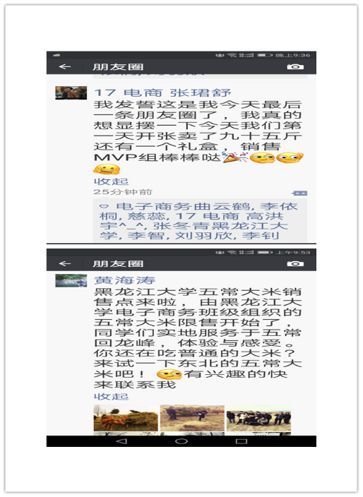 通过这次活动为五常市二河乡销售大米2900公斤。帮助农民解决了网上销售的技术问题,为我省农村电商发展做出自己的贡献。
