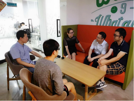 调研期间,调研工作组一行人分别与中关村成都创业中心总经理陈嘉俊、副总经理何媛,成都天府软件园有限公司人才服务部刘啸川,北京繁星创想科技有限公司(成都办事处)负责人、公司2013届计算机、软件公司员工包慧,英智人才服务(成都)有限公司高级经理、公司2012届计算机、软件公司员工陈金鑫等人进行了对接交流。调研工作组就公司和相关公司近年来发展建设的整体情况从团队建设、团队队伍、科学研究、人才培养等方面进行了介绍,尤其针对近几年毕业生的就业情况向用人企业做了详细的说明,并向用人单位分发了校院两级的就业宣传材料。