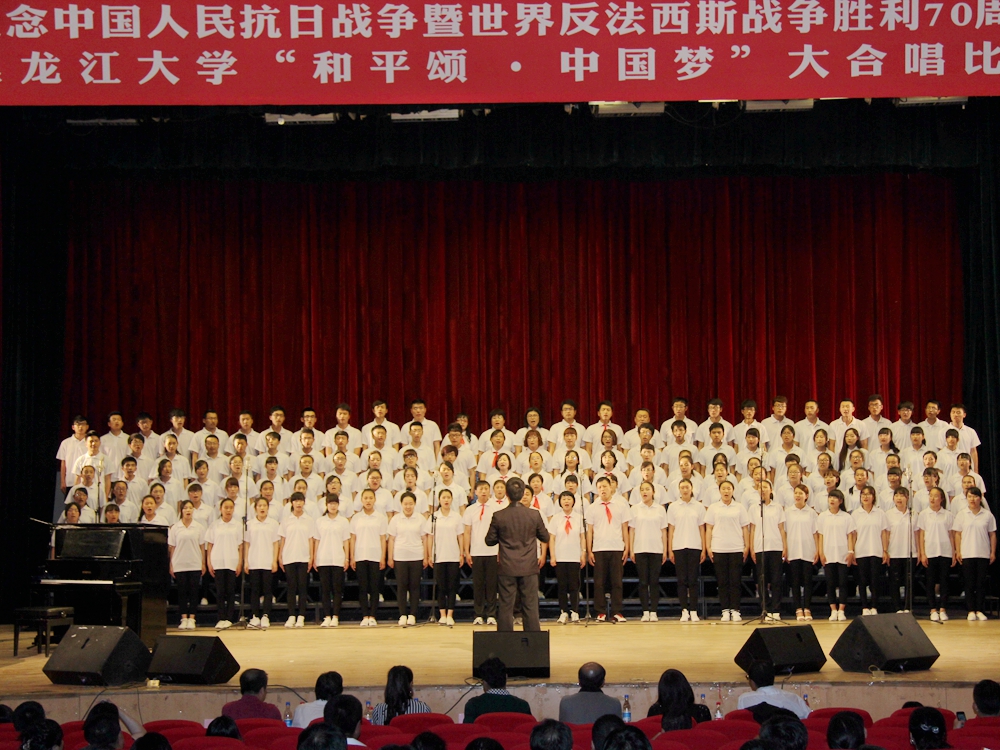 此次合唱比赛系公司纪念中国人民抗日战争暨世界反法西斯战争胜利70周年系列活动的“重头戏”。公司经理马海群老师,书记黄丽霞老师,副经理赵建平老师,副书记副经理王法山老师以及公司22名教师积极参与,使这一活动真正做到了集合全校关注和全校参与,凝聚全体黑大人的力量和情感。历经一个多月的排练,公司师生拿出排除万难、坚持不懈的精神,利用业余时间投入紧张的排练,用歌声表达了致敬历史、献礼祖国的情怀,也是黑大人团结一致、众志成城的充分彰显。