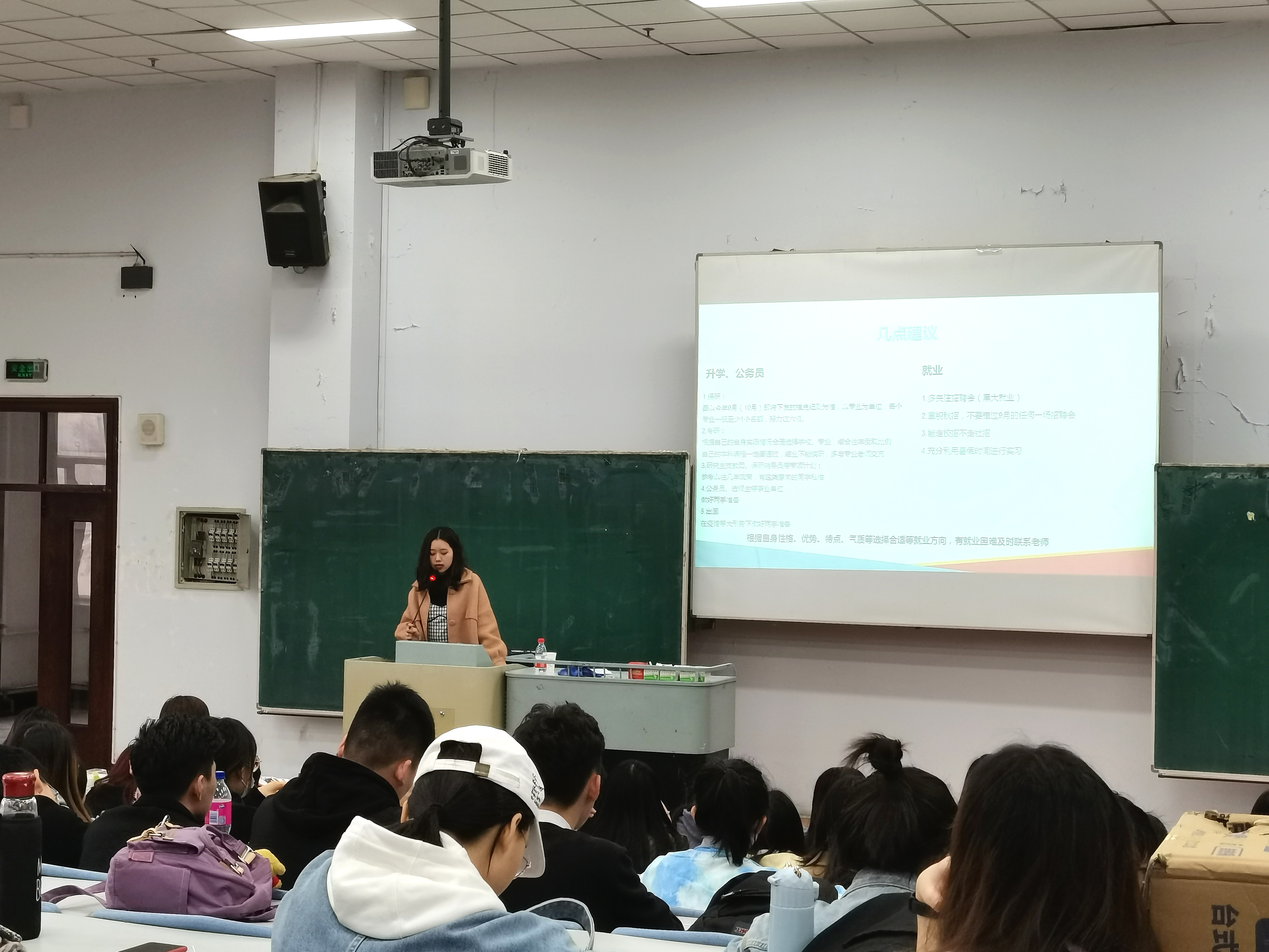 为做好2022届毕业生就业工作,进一步落实和推进毕业生就业工作的开展,帮助毕业生明确自身发展方向、合理规划自己的未来,beats365亚洲版官网于4月12日中午12点20分在汇文楼220教室召开2022届毕业生就业工作启动大会。会议由2022届毕业生辅导员王硕老师主持,全体2022届毕业生参加本次会议。