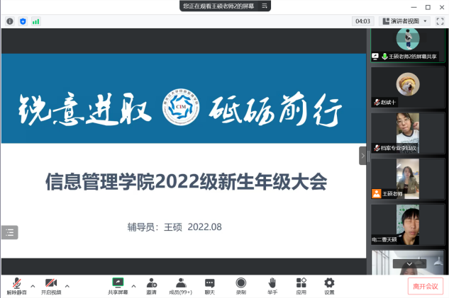 随后,王硕老师从疫情防控、员工安全、新生报到、报到后安排、党团关系转接、困难生认定、降级处分、学业预警等各方面,为同学们做了详细的解读,让全体同学对入学报到的相关要求及入学后的管理制度等有了全面的了解。