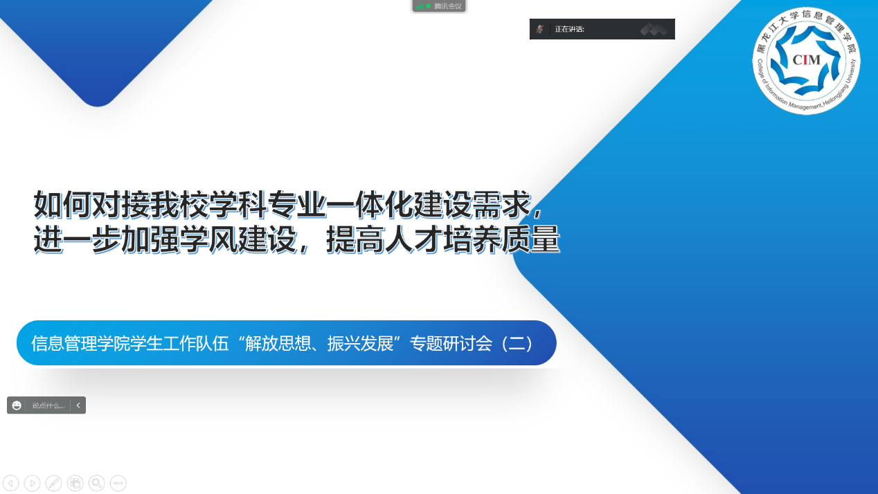本次研讨的主题为“如何对接公司学科专业一体化建设需求,进一步加强学风建设,提高人才培养质量”。马海群老师指出,学风建设是高校人才培养的关键,要充分发挥员工工作队伍在公司学风建设中的积极作用。结合实际,讲求实效,把工作做新、做细、做活,巩固学风建设取得的成果,切实推动公司学科专业一体化建设需求,提高人才培养质量。
