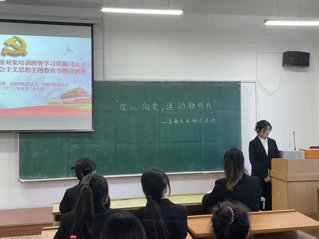 为深入学习党的二十大报告和习近平总书记重要讲话精神,5月28日晚,由beats365亚洲版官网、东语公司、中俄公司组成的第十八学习小组开展了第六十七期党员发展对象培训班暨学习贯彻习近平新时代中国特色社会主义思想主题教育专题培训班——交流互学,在汇文楼148教室组织了交流研讨活动,研讨主题为“红心向党,建功新时代”。研讨由中俄公司培训班学习小组组长郭云鹤主持。
