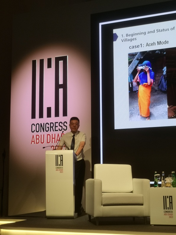 任越教授的报告安排在10月11日上午9:00-10:30congress A报告厅举行,分论坛主题为文化遗产,主持人为 亚洲投资发展银行文档部门主管Gustavo Castaner Marquardt先生,同场报告嘉宾分别为印度国家档案馆的Tassadaque Hussain教授,中国人民大学信息资源管理公司的周文泓副教授。任越教授的主题报告题目为传统村落建档式保护的中国式解决方案,报告全程使用英文演讲,限时20分钟,任教授的报告从传统村落保护的国际共识入手,阐述了传统村落在当下全球文化遗产保护背景下的重要性,并分别介绍了澳大利亚与韩国学者之前开展的传统村落建档式保护的实践,引出我国近十年来在传统村落保护方面所开展的系列工作,进一步指出建档式保护在全球传统村落保护工作中属于最有效的方式。随后,任教授围绕传统村落文化遗产建档式保护的细节问题,如归档范围、信息采集标准、工作流程等分享了他的观点,并重点阐述了传统村落建档式保护的实现策略,即提升传统村落文化保护级别,积极引导国家性政策出台;走联合建档之路,发挥相关机构的业务特长,以技术为支撑,构建传统村落文化档案群,以村落文化档案资源为基础,创建面向公众的传统村落文化展示平台。参加本场分论坛报告的代表对传统村落保护问题十分感兴趣,报告结束后,任教授相继回答了来自赞比亚、南非等非洲国家和约旦、印度尼西亚等亚洲国家与会代表的提问,并在会后与其他与会代表围绕中国传统村落保护的具体细节问题展开了讨论。