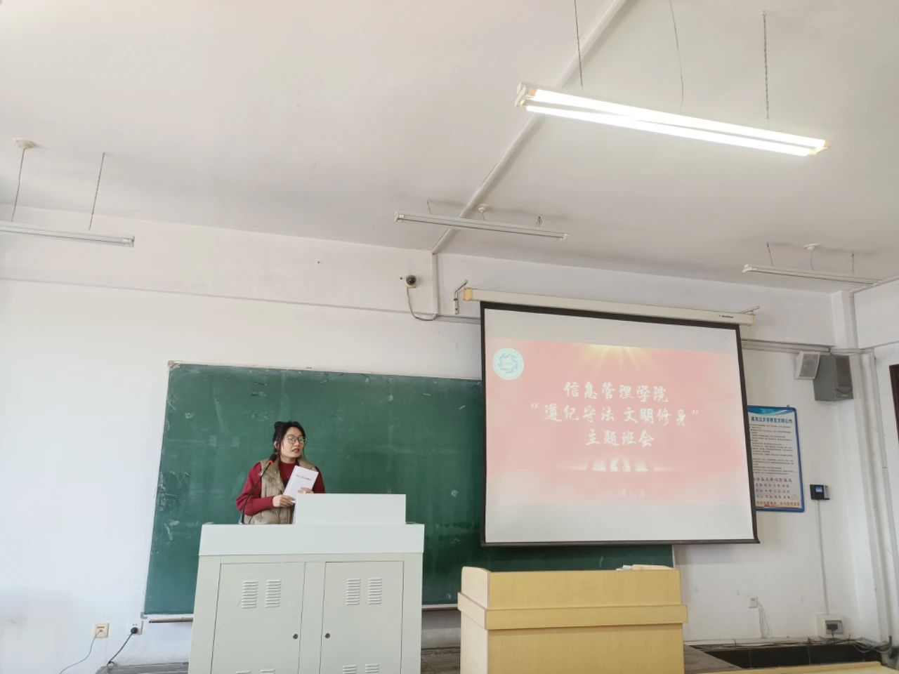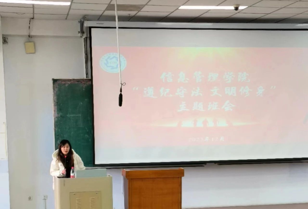 为倡导“遵纪守法,文明修身”的理念,严肃校园纪律,促进校园文明建设,强化同学们的遵纪守法意识和文明素养,beats365亚洲版官网于12月11日至12月17日开展“遵纪守法文明修身”主题班会,公司党委副书记赵丽明同各年级辅导员深入班级,带领同学们一起学习纪律规范,提升文明素养。本次“遵纪守法文明修身”主题班会既是一次深入的思想教育,同时也是对《公司员工管理规定》(2023年9月修订)一次深入的学习。信管学子们通过本次主题班会,更加坚持贯彻“遵纪守法,文明修身”的理念,以高尚的品格斩除万难,以良好的素质奋进新的未来。