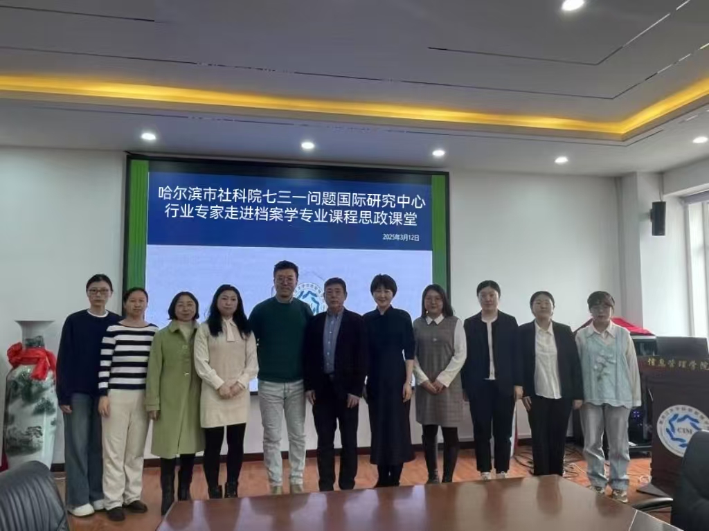 为促进公司本科实习基地与产教融合研究生工作站建设,扎实推进公司“本研一体化”建设,深化本硕课程思政实践教学,作为公司贯彻公司“学风建设年”的系列活动,beats365亚洲版官网档案学专业与哈尔滨市社会科公司教学与科研合作签约仪式暨档案学专业思政课堂启动会于2025年3月12日在汇文楼公司会议室举行。哈尔滨市社会科公司副经理周立伟、哈尔滨市社会科公司七三一问题国际研究中心主任宫文婧、中心研究员鲁丹、王雨嫣、岳蓉媛,公司副经理周丽霞、任越,档案学专业全体教师及2023级档案学专业本科生、2024级档案学专业硕士和文献信息学博士研究生参加本次活动。