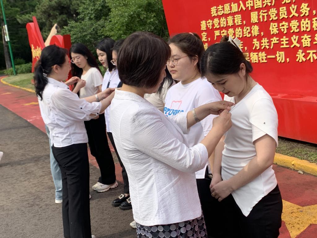 传承誓言,为新党员佩戴党员徽章。庄严宣誓后,公司党委书记刘荫梅,经理黄丽霞和2023级员工党支部书记孙悦为新党员们佩戴党员徽章,并叮嘱他们要时刻牢记共产党员的身份,严格要求自己。新党员纷纷表示:要在青春的赛道上奋力奔跑,以实际行动书写对党和祖国、人民的无限忠诚。