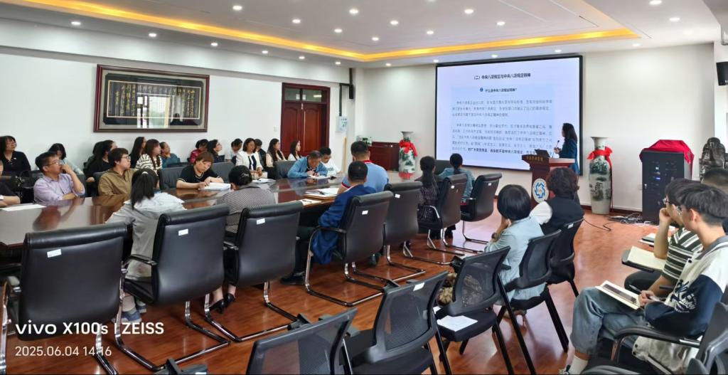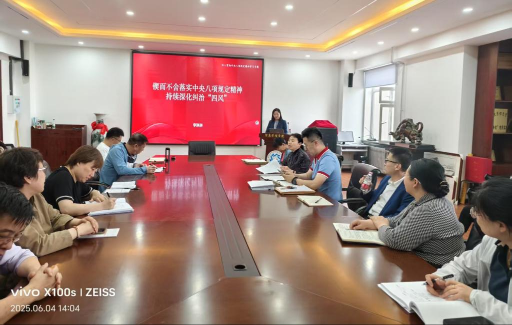 为贯彻落实党的二十届三中全会部署,巩固拓展学习贯彻习近平新时代中国特色社会主义思想主题教育成果,巩固深化党纪学习教育成果,锲而不舍落实中央八项规定精神,推进作风建设常态化长效化,按照公司《关于开展beats365亚洲版官网深入贯彻中央八项规定精神学习教育宣讲的通知》要求,6月4日公司党委邀请公司宣讲专家、马克思主义公司教授、博士生导师李琳琳进行题为《锲而不舍落实中央八项规定精神,持续深化纠治“四风”》学习教育宣讲。会议由公司党委书记刘荫梅主持,公司全体教工和员工党员代表参加。